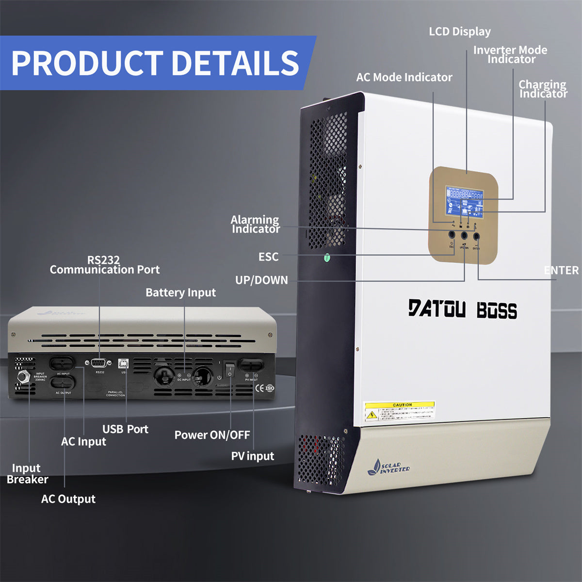 5000W Pure Sine Wave Hybrid Inverter 48V DC To 230V AC Off Grid Inverter With 100A MPPT Solar Controller LCD Display - 5000W