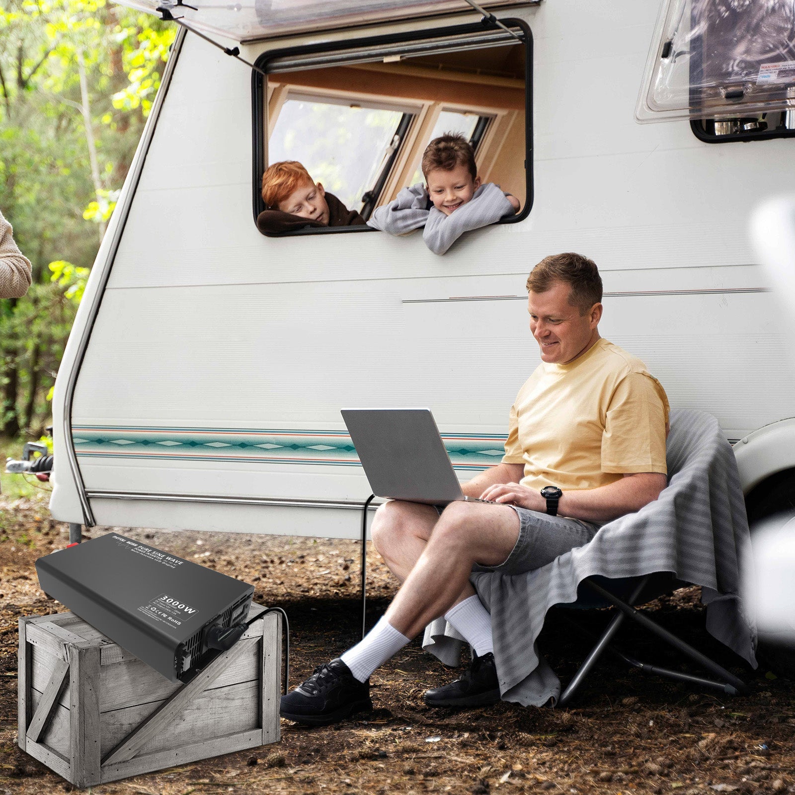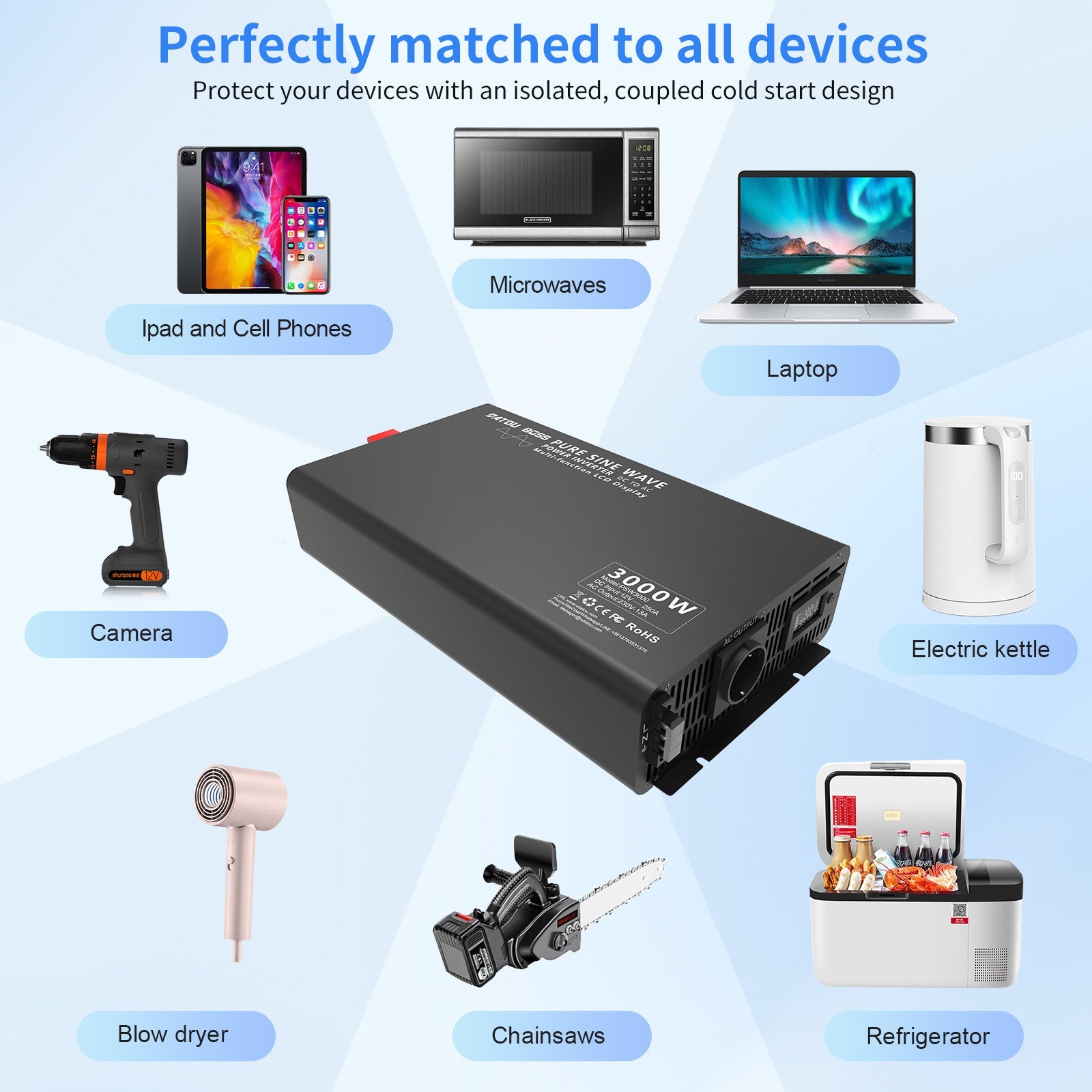 3000W Pure Sine Wave Inverter 12V to 220V with EU Socket Remote Control LCD Display for Cars Electrical Use
