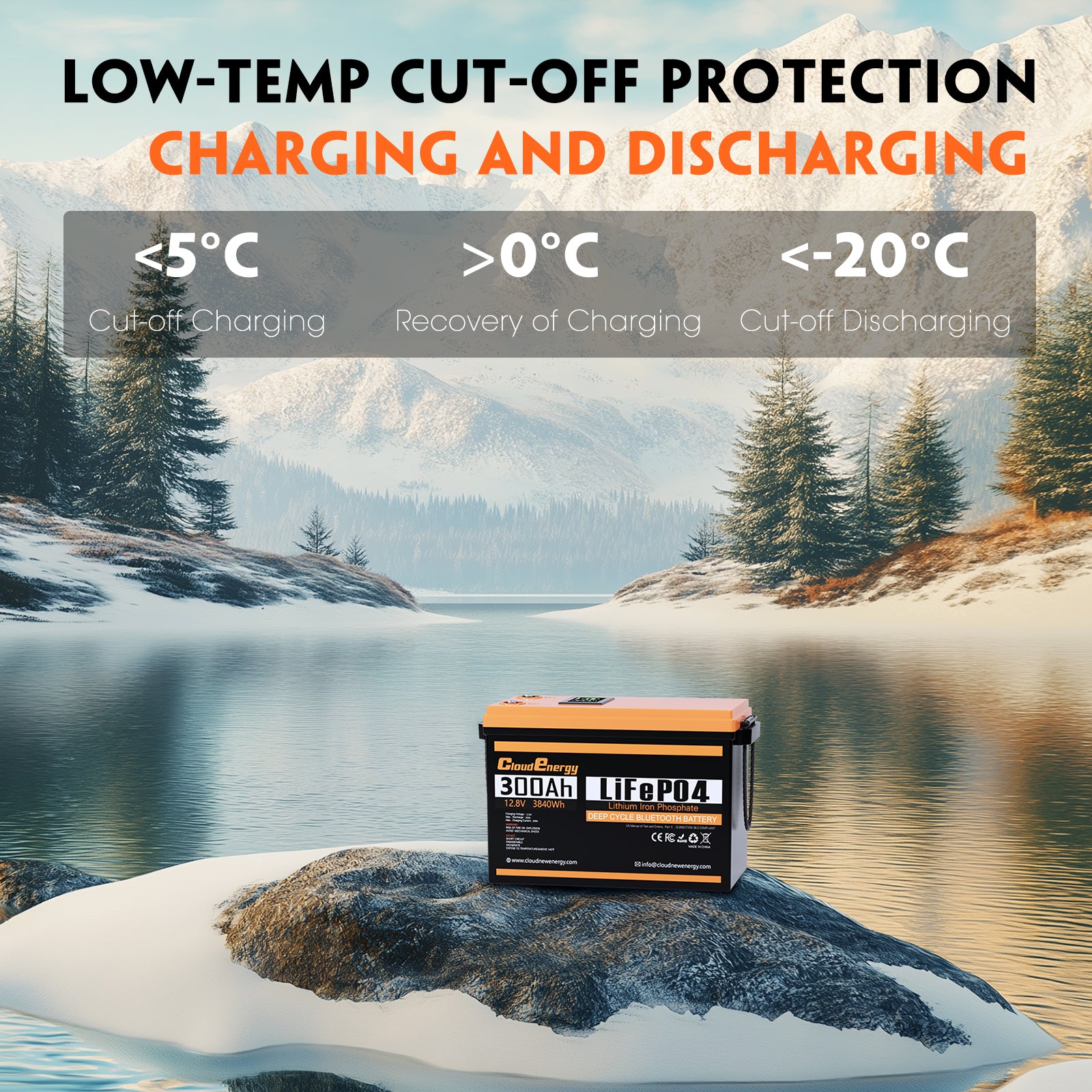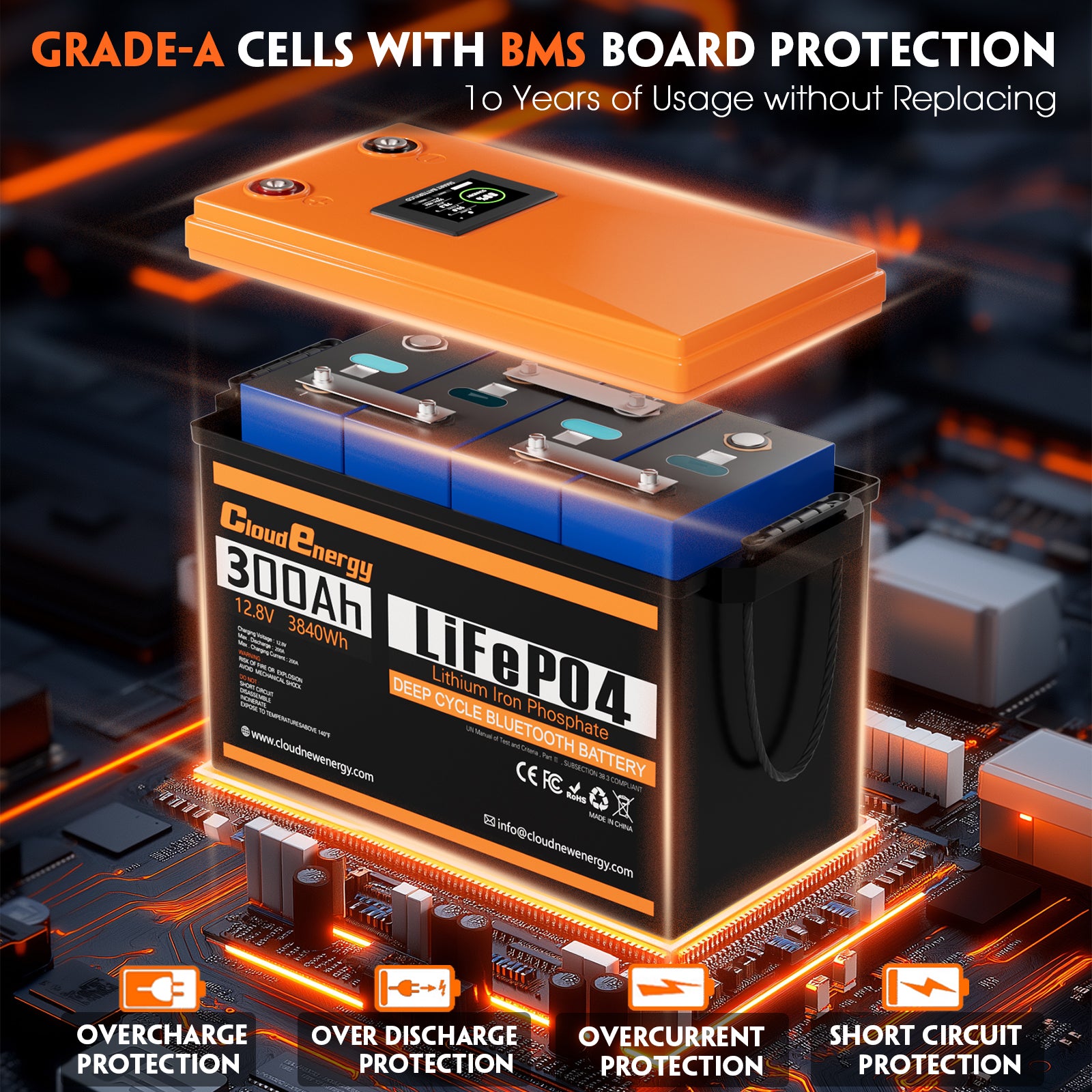 CloudEnergy 12.8V 300Ah LiFePO4 Rechargeable Battery 200A BMS Bluetooth