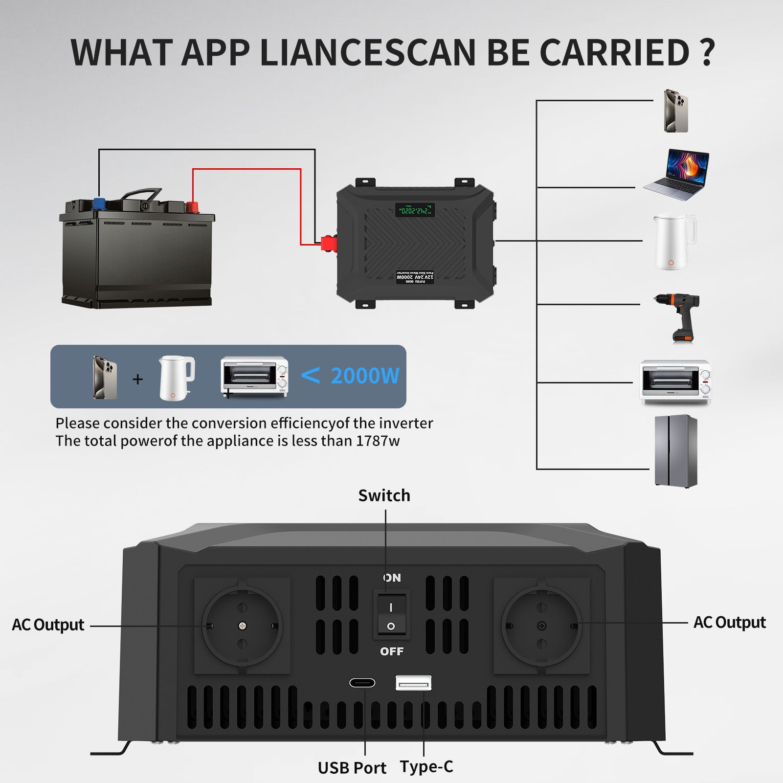 Portable Car Inverter 2000W Pure Sine Wave Dual Voltage Inverter 12V to 24V Auto Switching Solar Inverter